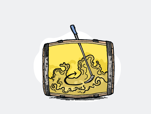 Stirring, or bâtonnage, increases contact with the lees, which are yeast cells and other solids that have settled from the wine. Stirring is a great way to bring flavour into a white wine, especially if it has gone through primary fermentation only (no malolactic fermentation).