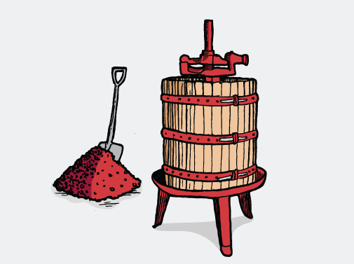 Crushing is for Red wines, to colour the juice with the skin of the grapes and keeps the skin and seeds with the grapes for fermentation. Generally, White wines will go directly into a pneumatic press which gently squeezes the grape and separates the juice from the skin and the flesh. The stuff left behind after pressing is called pomace and has many uses beyond the winery, including cosmetics, food products or fertiliser in the winery. The time that the grape must spends in contact with the pomace will determine the some of the characteristics of the wine including colour and acidity and this length of time is up to the winemaker.