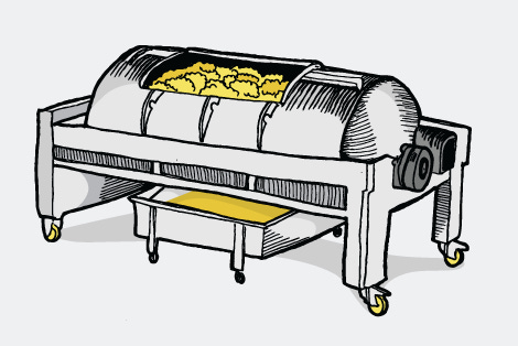 Once the grapes are harvested, they’re taken to the winery and processed (never washed, as this would ruin the fruit-quality concentration!). Initially the grapes are then put onto a sorting table to remove the “MOG” (materials over than grapes, which can include leaves or stones etc) – only if this hasn’t already been done in the vineyard.